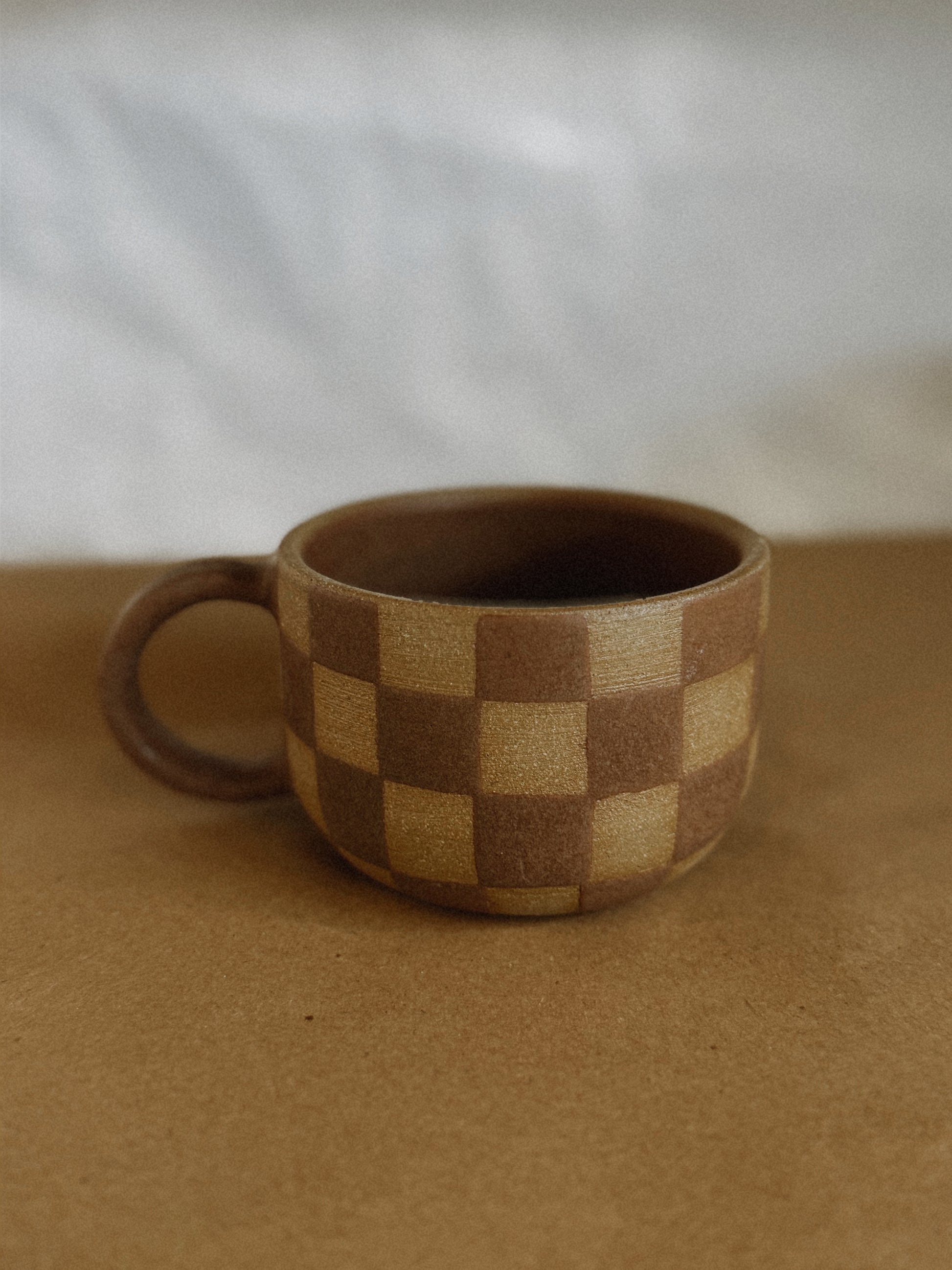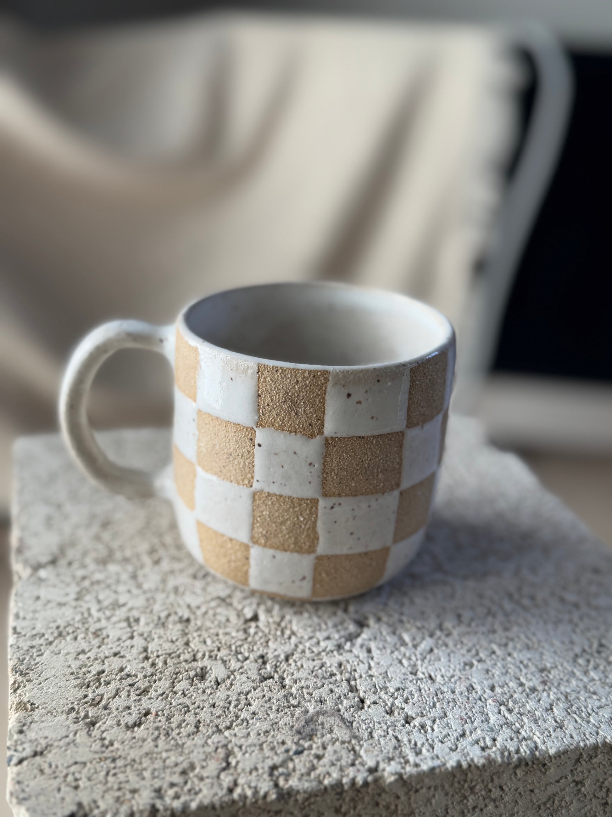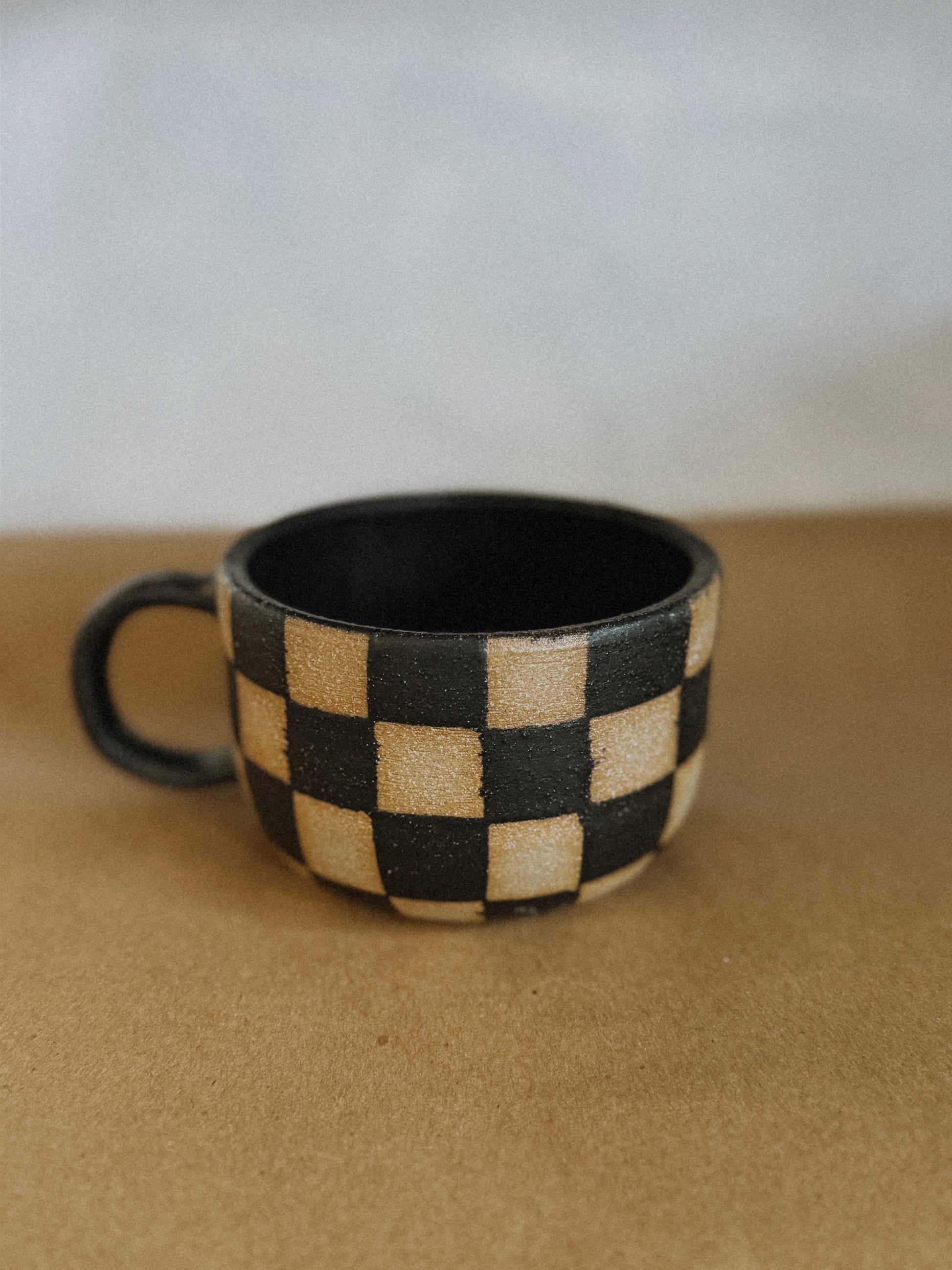 Indulge in your daily dose of caffeine with our sophisticated, handcrafted Checkered Mug. Each mug is meticulously thrown on the wheel, resulting in a one-of-a-kind piece. The timeless checkered design adds a touch of luxury to your morning routine.