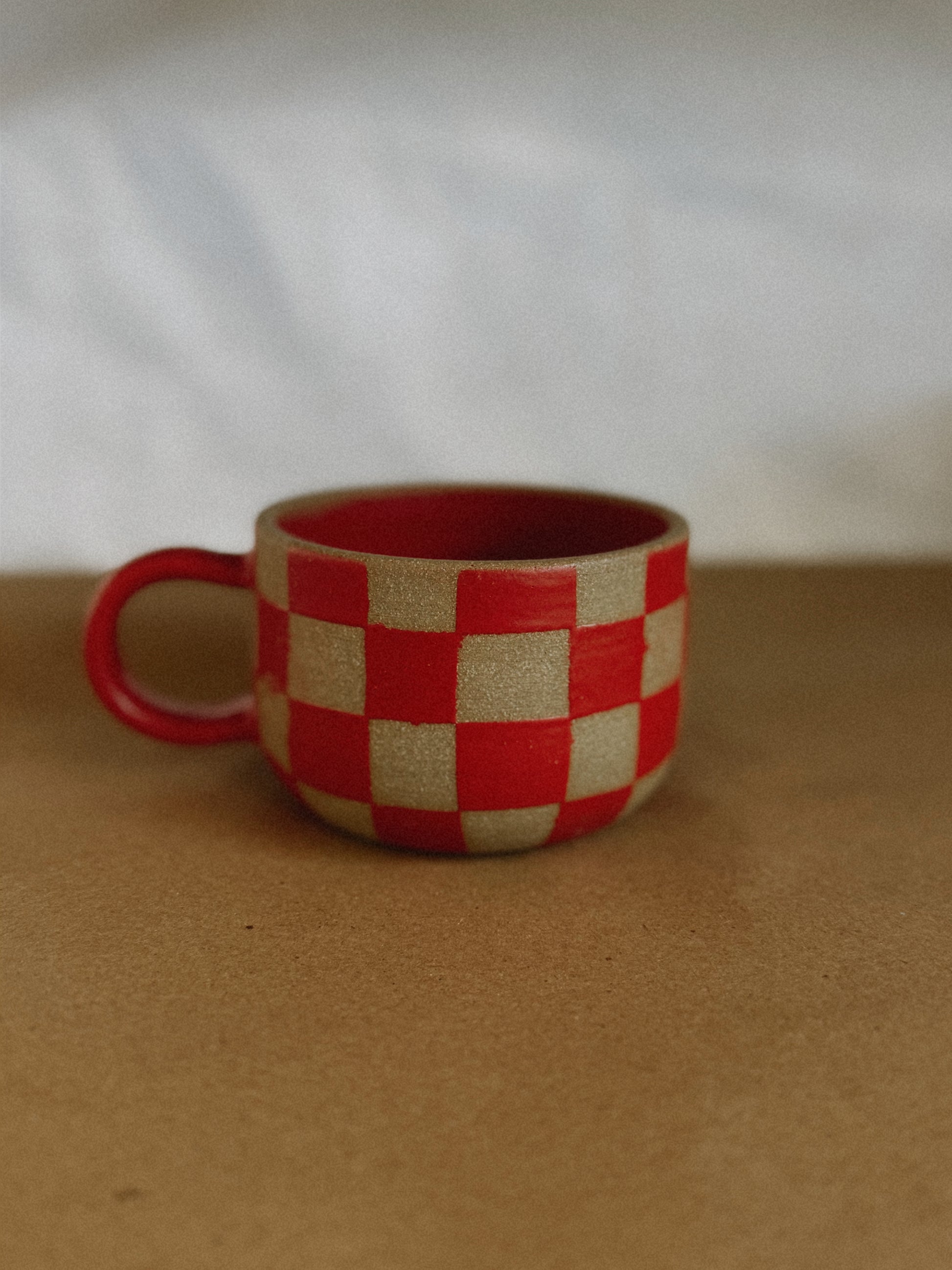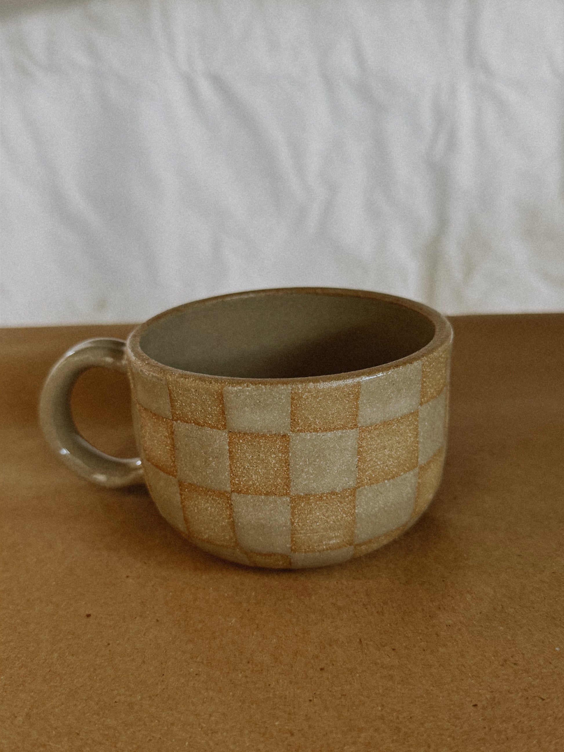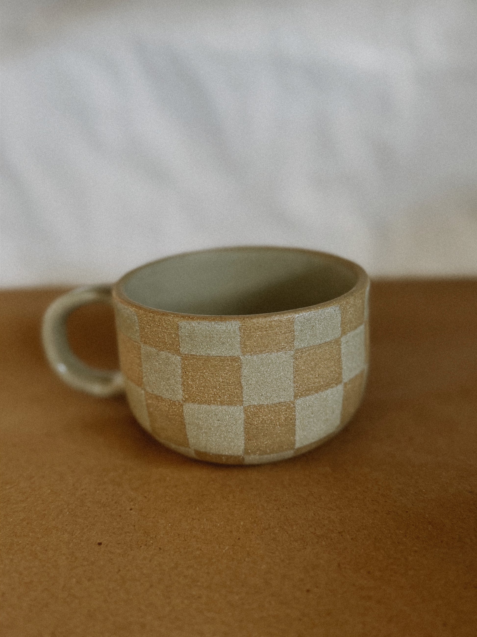 Indulge in your daily dose of caffeine with our sophisticated, handcrafted Checkered Mug. Each mug is meticulously thrown on the wheel, resulting in a one-of-a-kind piece. The timeless checkered design adds a touch of luxury to your morning routine.