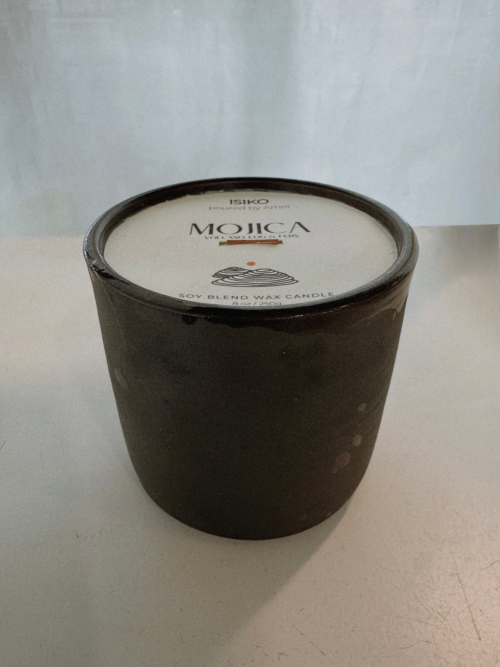 Handmade vessel thrown on the wheel with a smooth black clay and glazed on the inside. Polluted by local San Diego candlemaker Amoi. Once the candle is burned through you can clean out the candle to reuse and get refilled or use as a cup or anything you desire.
